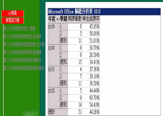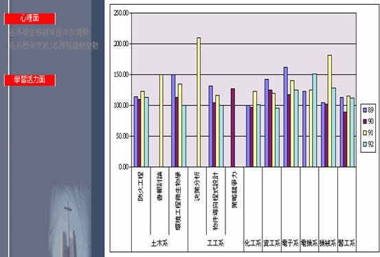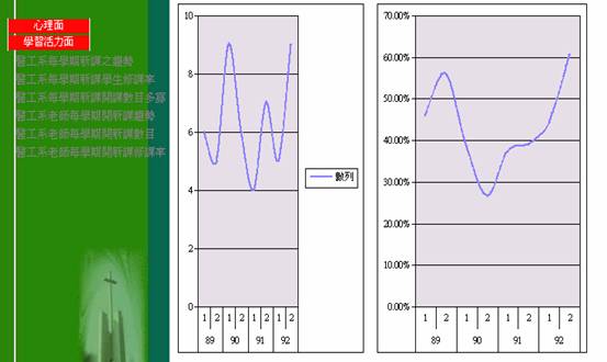 顯示醫工系每個學期新課之開課趨勢曲線圖 |