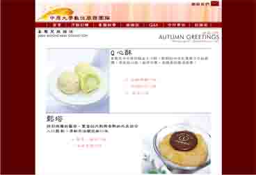 本網站最重要的頁面之一,就是訂購葉,完美的美工排版,提供新鮮美麗的月餅照片,讓瀏覽者無法抵擋訂購好吃月餅的慾望。 |