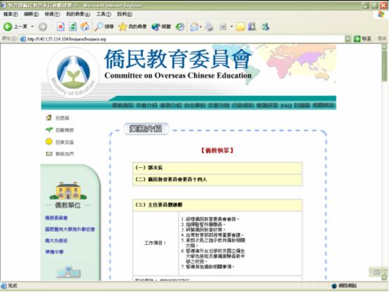 細部功能:介紹僑教會的組織、工作項目、聯絡方式和組織規程等