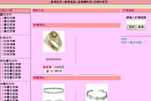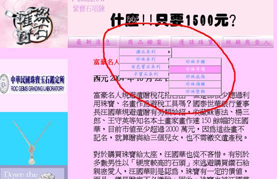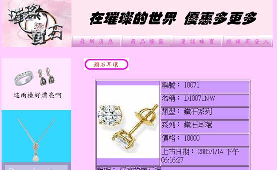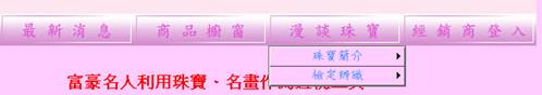 .包含最新消息、商品櫥窗、漫談珠寶與經銷商登入四項連結,如下圖所示。 |