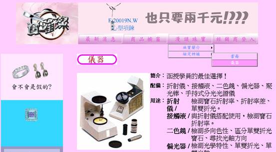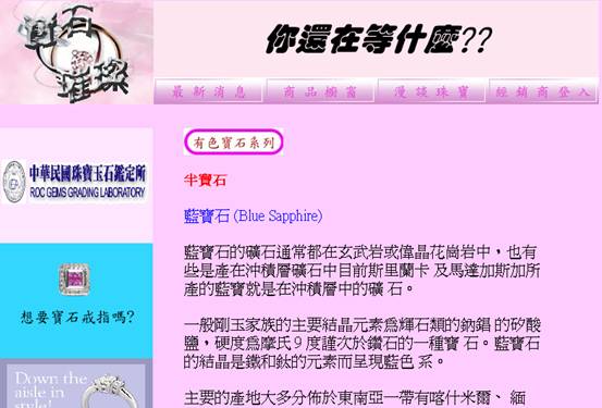 .而在「檢定辨識」的部分,我們也提供了寶石檢定儀器及參考書籍的資訊,讓網站的瀏覽者能夠對寶石有更加深入的了解。 |