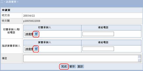 若有備註事項可填入備註的框框中,然後點選完成按鈕完成法務部主管派案。
