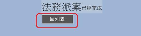 若出現以上訊息即表示主管審核工作已經完成,按回列表按鈕回到出現等待法務主管派案的列表。