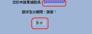 登出前若出現以下畫面,pxxxxxxxxxxx為申請單之編號,請按登出離開系統。