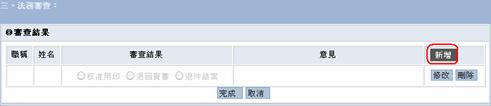 點選審查結果中的新增按鈕,加入審查結果之意見。