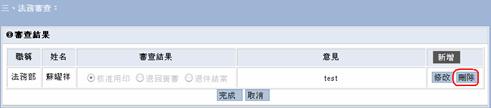 若錯誤新增了審查結果,請點選刪除按鈕將該項審查結果意見刪除。