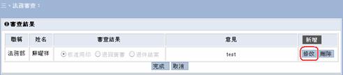 若要修改新增的審查結果,請點選修改按鈕將該項審查結果意見修改。