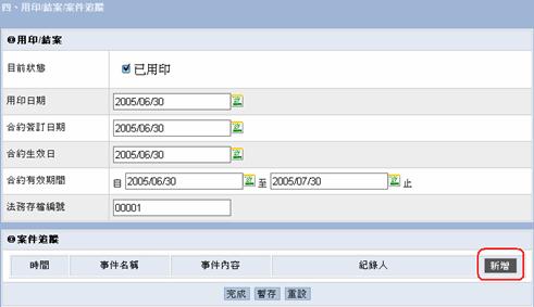 在用印程序時,若合約發生需追蹤事件時,則點選案件追蹤的新增按鈕。