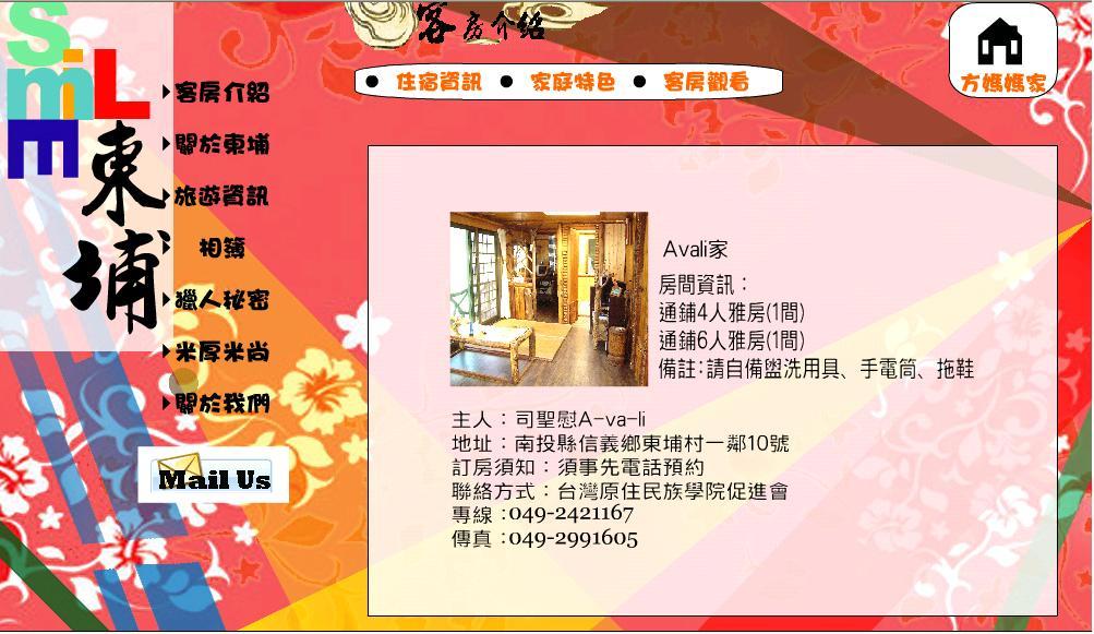 既然整個網站所要傳達的是東埔接待家庭,那客房介紹的功能怎能錯過, 當客戶有了興趣以後必然會對住的地方相當好奇,所以在網站的傳達上必 須把居住環境和住宿資訊明確表達出來,讓客戶可以找到他想要的訊息, 像是接待家庭主人是誰,所需要支付的費用,居住房間的樣子等等。