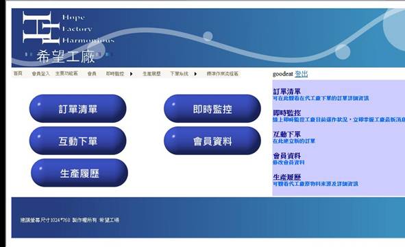 當帳號密碼輸入正確後,登入成功,進入網站主功能選單,提供給使用者做選擇