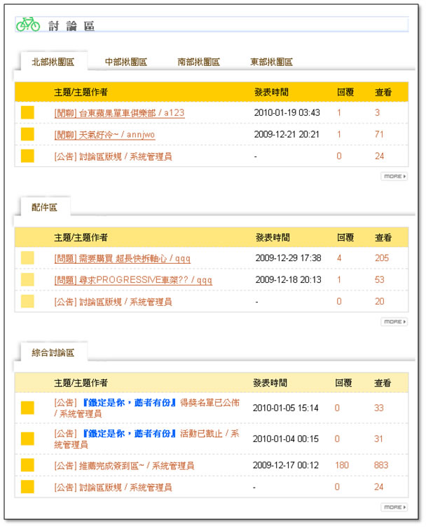 討論區可以讓使用者到此來發表文章,與其他人討論騎車的心得。