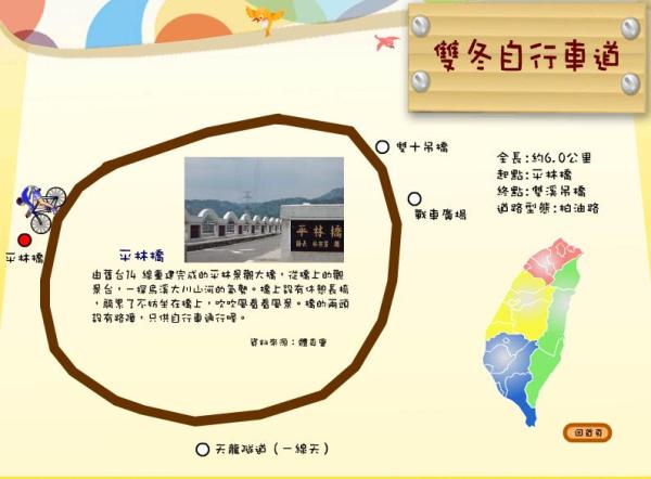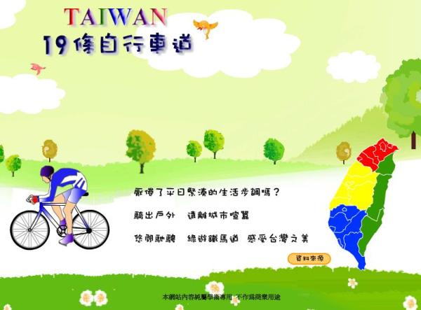 從體委會彙整全台50條自行車路線,中選出19條路線作成動畫影片,以供使用者作為路線參考
