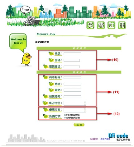 10.在首頁點選免費註冊後,即進入此網頁頁面,在這個部份需要填入帳號以及密碼。