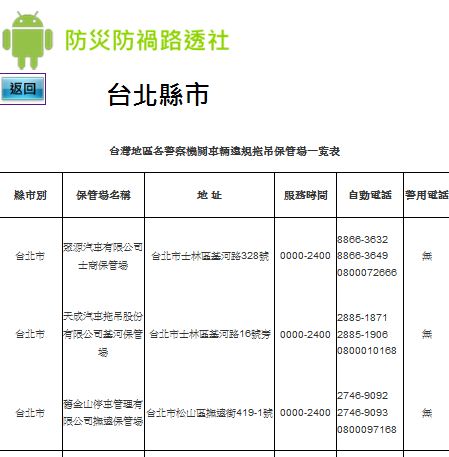 5-2. 拖吊資訊 - 違規拖吊 (拖吊場資訊,需先點選縣市)