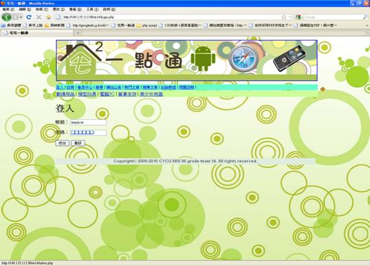 網站的首頁,可在此登入或註冊會員