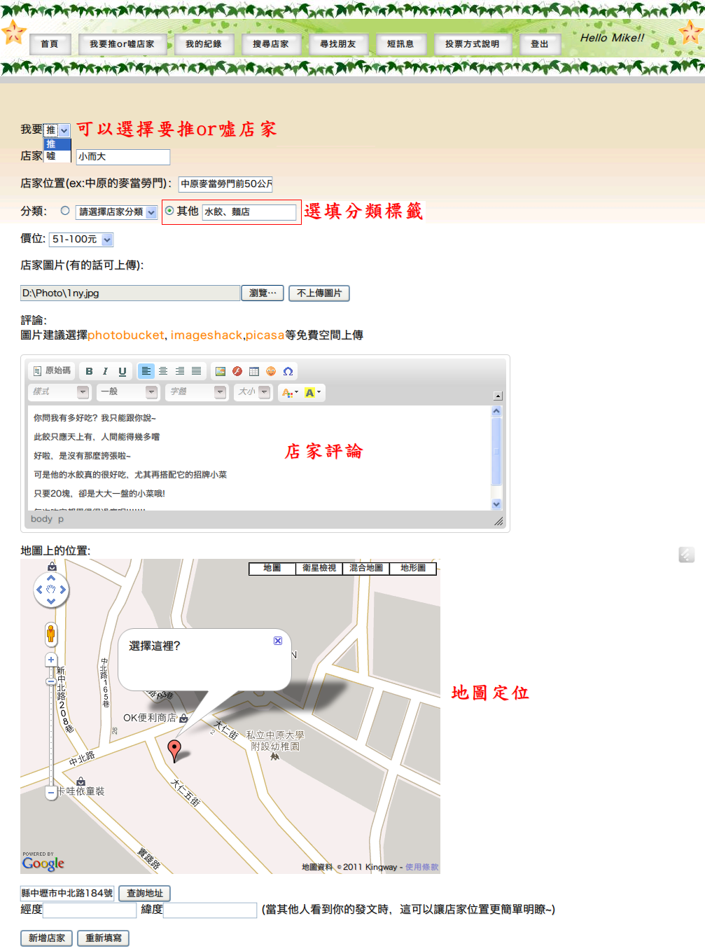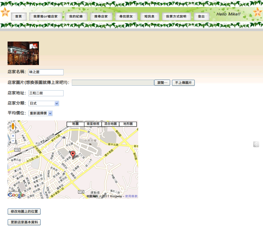 修改店家資訊