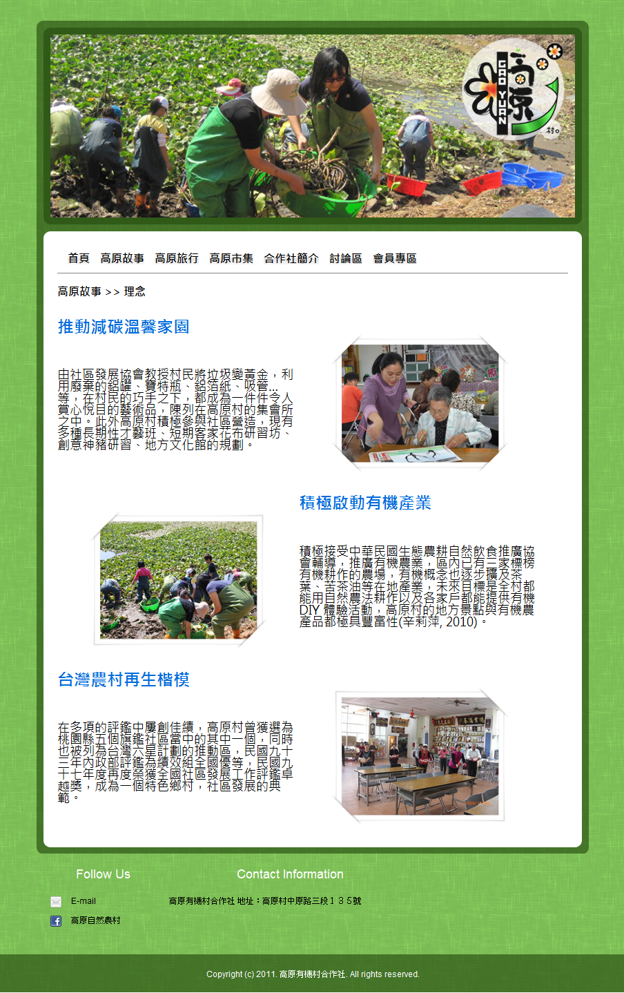 除了基本的高原村理念外,搭配人文、環境、歷史古蹟,以及生態環保的概念,詳細、忠實地呈現完整高原村現況。
