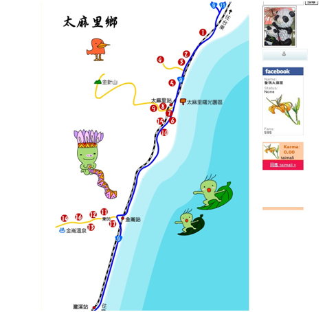 太麻里當地的旅遊地圖,把滑鼠移到數字上面,點選進去後可以觀看詳細的介紹。