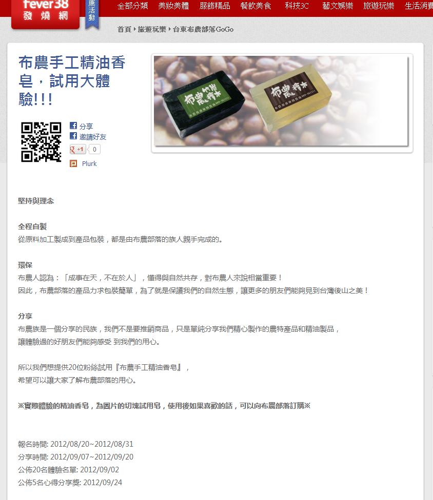 此為布農手工精油香體驗活動之活動頁面。