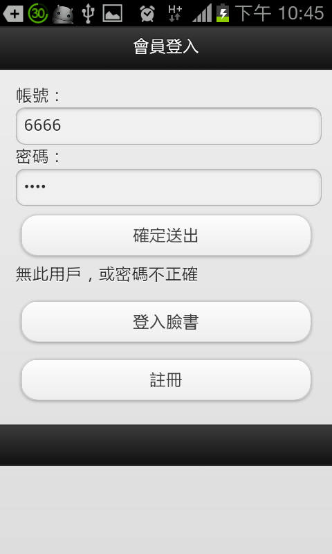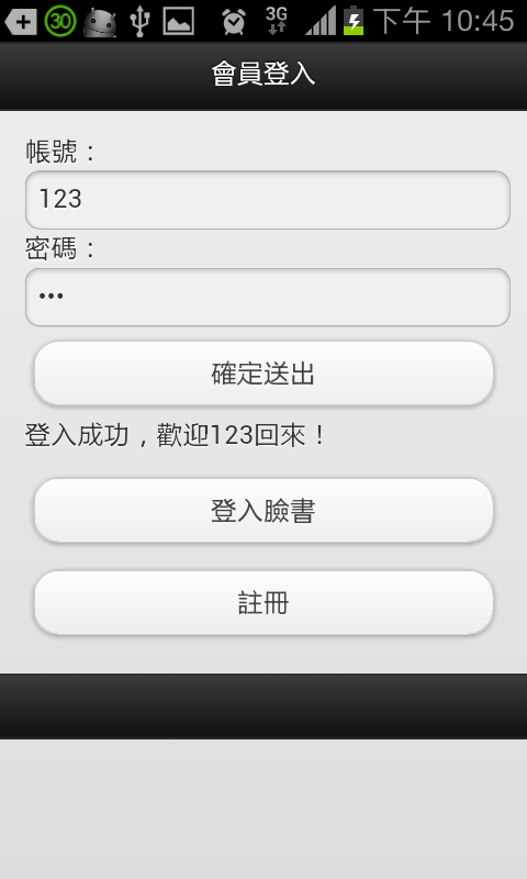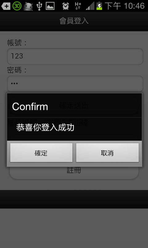 會員登入失敗、登入成功的實機畫面。