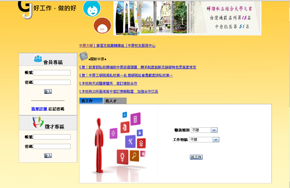 ●進入首頁,及可選擇登入會員或條件式搜尋職缺/人才