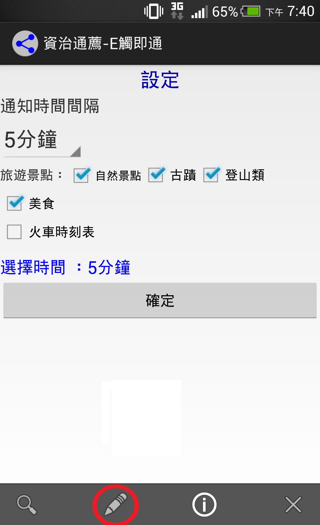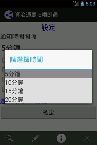 ※選取「筆」按鈕後進入設定頁面,可依使用者偏好,設定通知間隔時間、想要通知的事項。