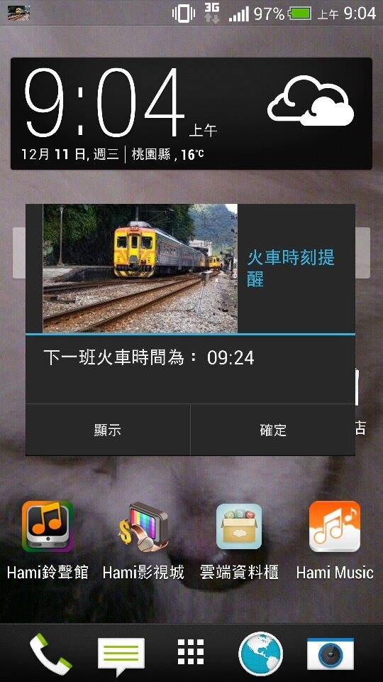※在設定頁面若有勾選火車、時間為20分鐘,則系統會在20分鐘前提醒使用者。