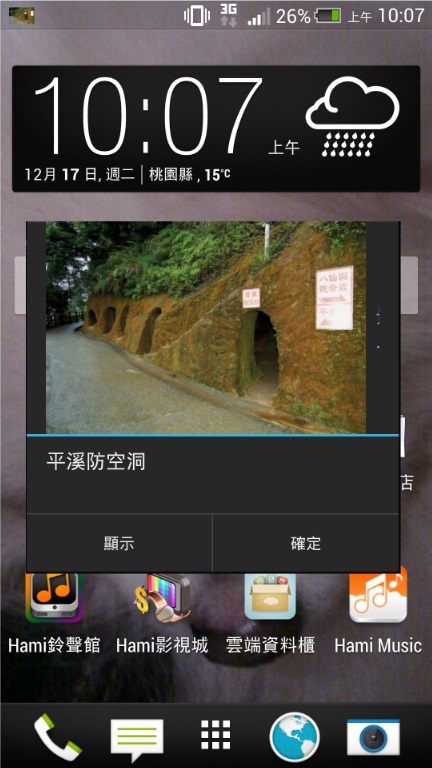 ※在設定頁面勾選景點,系統會推薦使用者附近的特殊景點。顯示鈕為顯示詳細資訊,按下確定鈕則通知訊息會關閉。